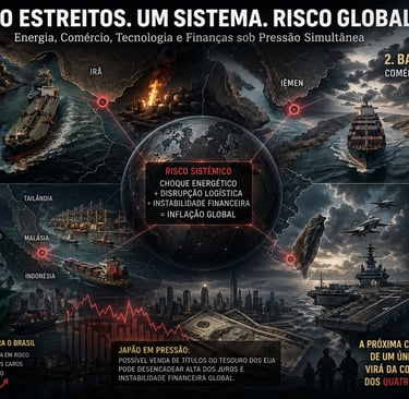 A próxima crise global dificilmente nascerá de um único evento. Ela emergirá da incapacidade de gerenciar, simultaneamente, os quatro estreitos que sustentam o fluxo de energia, comércio, tecnologia e finanças do mundo.